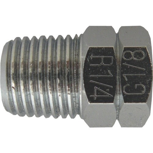 全長(mm):22 | タイプ:異径ニップル | ねじサイズ:R1・4オス×G1・8メス | 材質・仕上げ:真鍮 | 単位:1個
