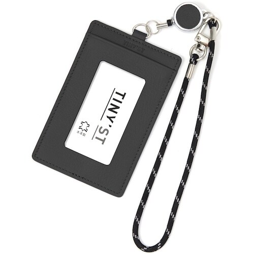 リュックにも馴染むコードストラップのリール付本革製パスケースです。