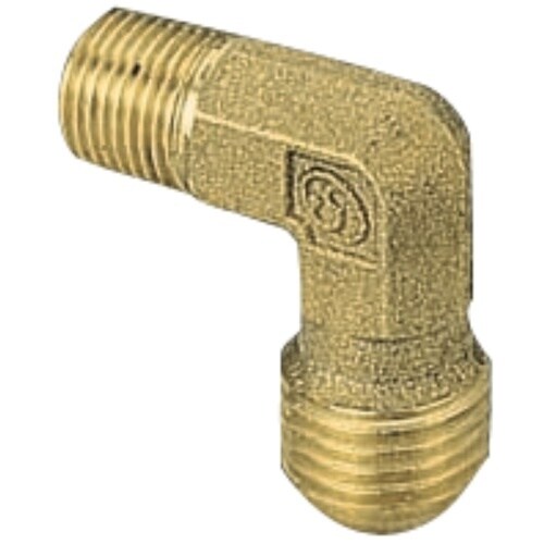 銅管フレア用継手R1/8 × G1/4。90°配管に使用します。冷温水・不凍液・油・エアー配管用。 |