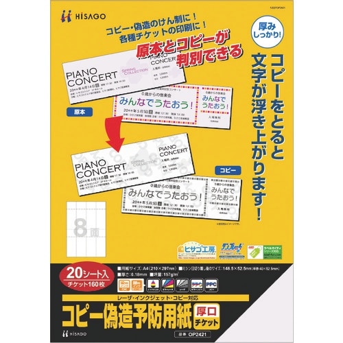 コピーをとると「COPY」の文字が浮き上がり、原本とコピーが判別できます。しっかりとした厚みがあるので、各種チケットにおすすめです。 |