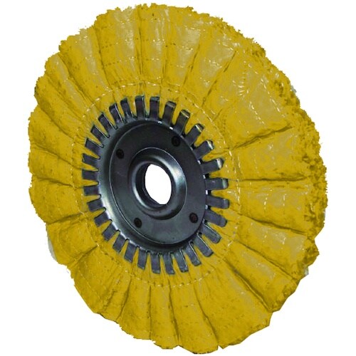 バイヤスによる面とサイザルを組み合わせたオープンフェースで柔軟性に富み空冷作用のあるバフです。異形面にも十分馴染み切れ味と仕上げツヤ出し効果があるバフです。 |
