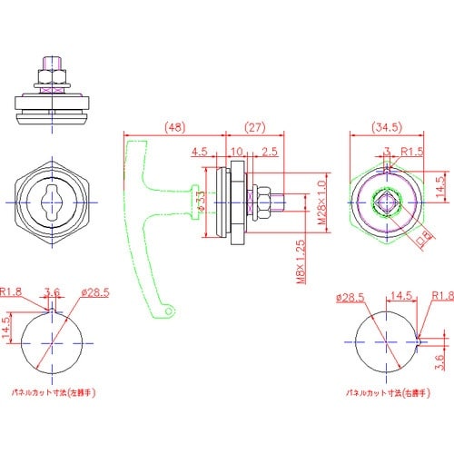 左右兼用型です。【左右勝手の変更】パネルカットの向きを変更して下さい。 |