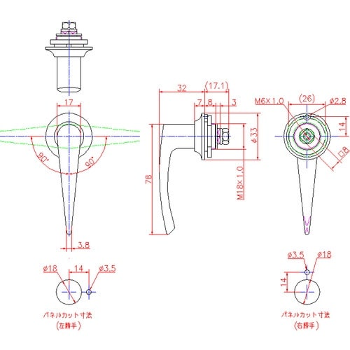 左右兼用型です。【左右勝手の変更】パネルカットの向きを変更して下さい。 |