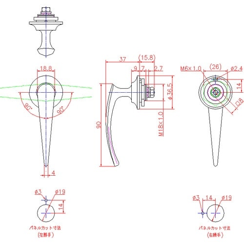左右兼用型です。【左右勝手の変更】パネルカットの向きを変更して下さい。
