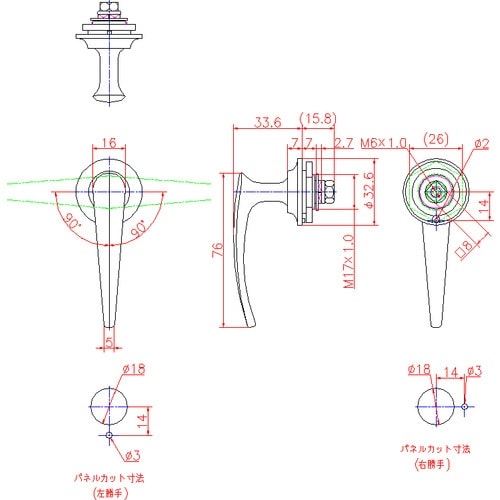 左右兼用型です。【左右勝手の変更】パネルカットの向きを変更して下さい。 |