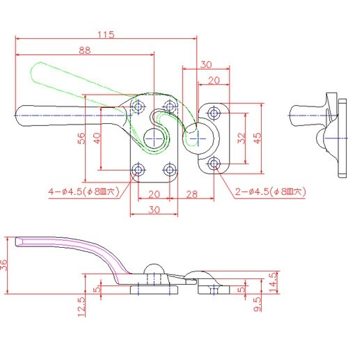 | 注意事項 | ※取付ネジは付属していません。別途ご用意下さい。推奨ネジ:M4皿小ネジ |