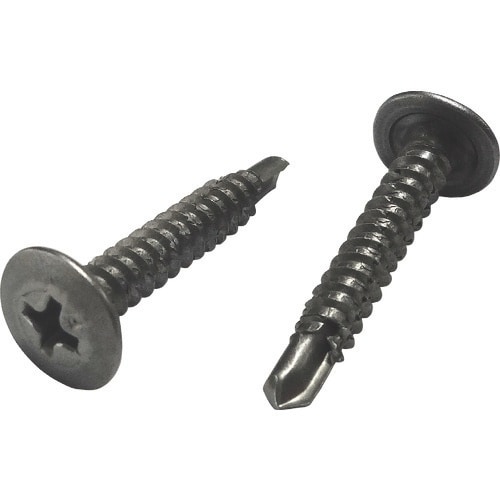 頭高さの低いドリルねじです。頭高さが1.5mmと低いため、パネル等を重ね合わせる時の干渉を最小限に抑えられます。施工後の頭部の浮きがなく、見た目も鮮やかで意匠性に優れます。