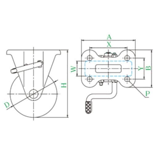 ユーエイ プレート式 固定 キャスター ウレタン 車輪径150mm ストッパー付き PMタイプ PMR−LB(L)型 取付寸法112×50(100×56)