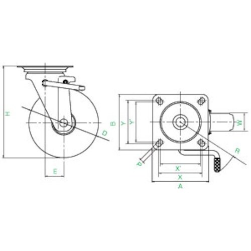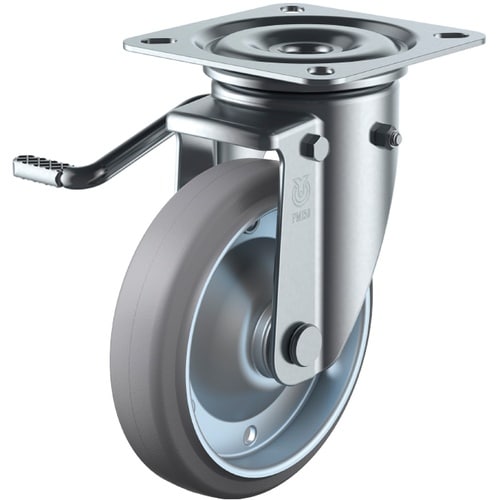 ユーエイ プレート式 自在 キャスター グレーゴム 車輪径130mm ストッパー付き PMタイプ PMS−LB(L)型 取付寸法90×90(80×80)
