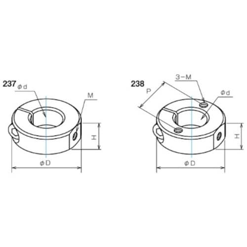 パイプのスライドや転回がしやすい丸穴タイプの製品です。主部品の補助リングに。 |