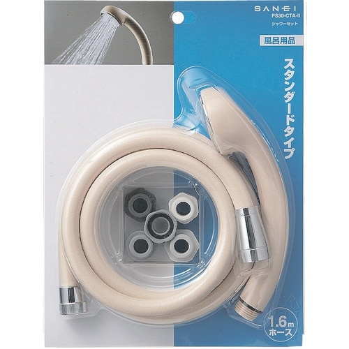 標準タイプのシャワーヘッドとホースのセットです。シャワーホースは回転式。 |