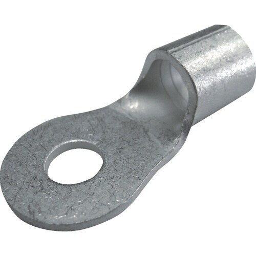 接触面(舌部)が丸く、ねじ固定用の取り付け穴がある裸圧着端子です。軟銅のより線または、単線の電線の接続に。