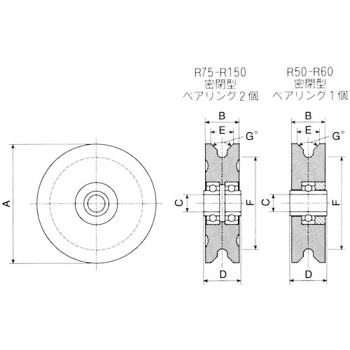 ヤボシ ヤボシ フジロイヤル重量戸車 V型 75mm 車のみ(枠付用芯棒セット付) A012-1230