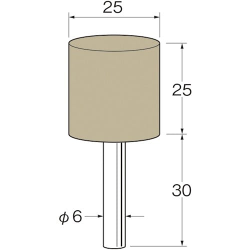 粒度(#):80 | 外径(mm):25 | 幅(mm):25 | 軸径(mm):6 | 軸長(mm):30 | 最高使用回転数(rpm):25000…