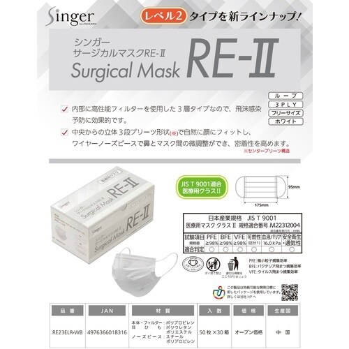 ・規格適合番号JIS T9001・認定番号 M22312004 医療用サージカルマスクです。・中央からの立体3段プリーツ形状でお口もとに空間ができ、お顔にフィットします。 |