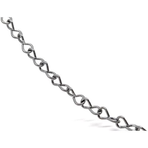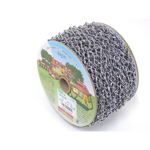 リンクの一方を90度ひねった鎖です。未溶接のため、扱いやすく、安価です。リールに巻いている製品のため、使用時に絡まりにくいです。軽量物の吊り下げ等に。 |