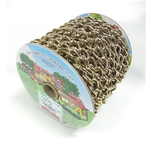 リンクを90度ひねったチェーン、仕上がりの美しさと扱いやすいチェーンです。リールに巻いている製品のため、使用時に絡まりにくいです。電着塗装しており、カラフルです。 |