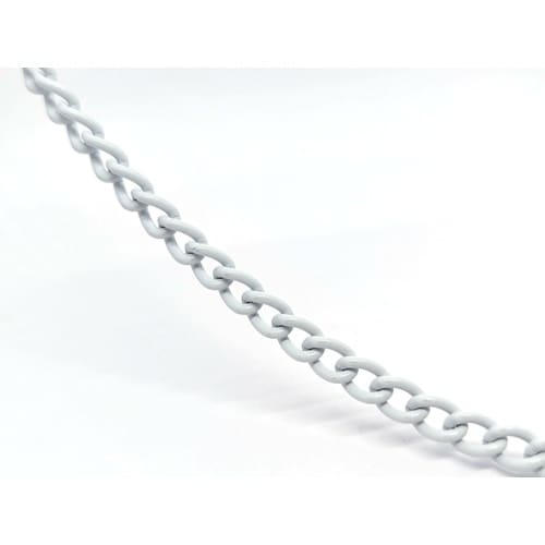リンクを90度ひねったチェーン、仕上がりの美しさと扱いやすいチェーンです。リールに巻いている製品のため、使用時に絡まりにくいです。電着塗装しており、カラフルです。 |