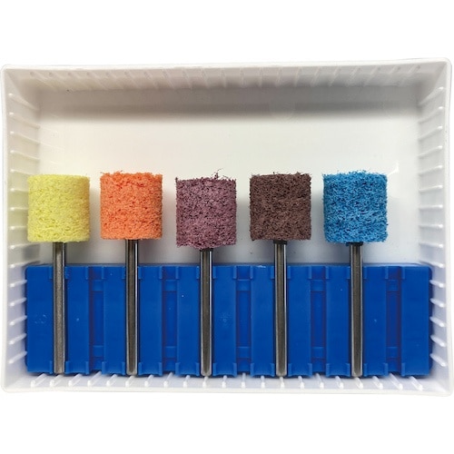 軸付ソフトラップのお試しセットです。使いやすく、お求めやすい工具セットで、趣味の方や初心者の方にお勧めです。ナイロン製不織布にWA砥粒が入っているソフト砥石です。 |