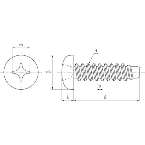 1種(Aタッピング)よりもピッチが細かく、先端2ー2.5山がテーパーになっています。主に薄鋼板(5mm以下)、樹脂、非金属用です。ヘキサゴンパック入りです。 |