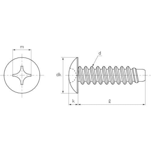 1種(Aタッピング)よりもピッチが細かく、先端2ー2.5山がテーパーになっています。主に薄鋼板(5mm以下)、樹脂、非金属用です。ヘキサゴンパック入りです。 |