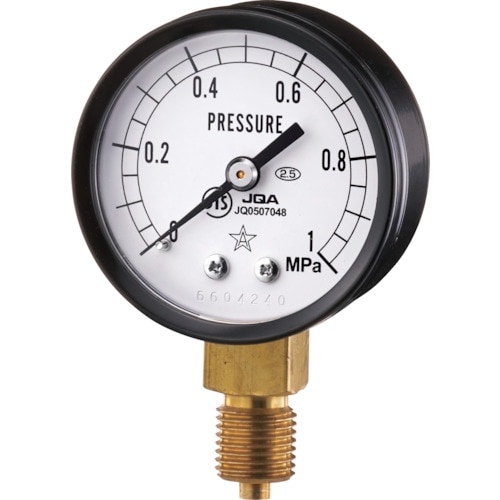 圧力レンジ(MPa):0〜0.1 | 最小目盛(MPa):0〜0.1 | 精度:±2.5%F.S | ケース形状:A | 接続部サイズ:R1・8 | …