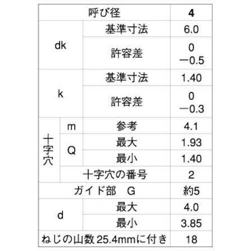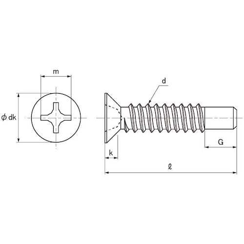 先端にねじの無いガイド(G)部分がついたタッピングねじです。 |
