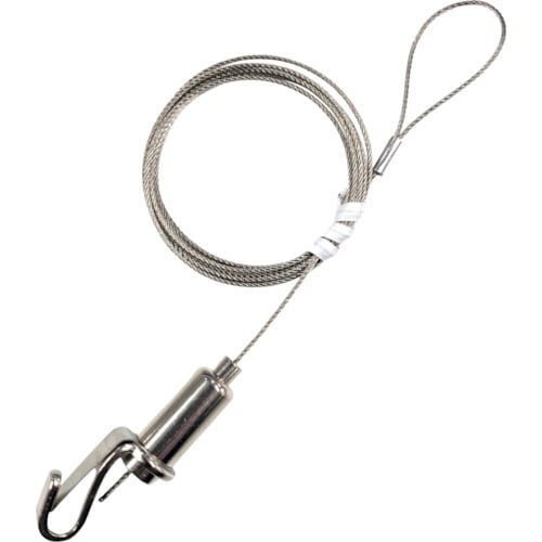 フック形状の自在金具とワイヤーがセットになったセフティ吊下げ金具です。