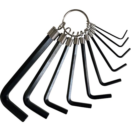 紛失防止のリング付仕様です。ミリ・インチサイズの6角棒レンチセットです。よく使用されるミリサイズを厳選してセット化しています。紛失防止や携帯に便利なリング付きです。 |