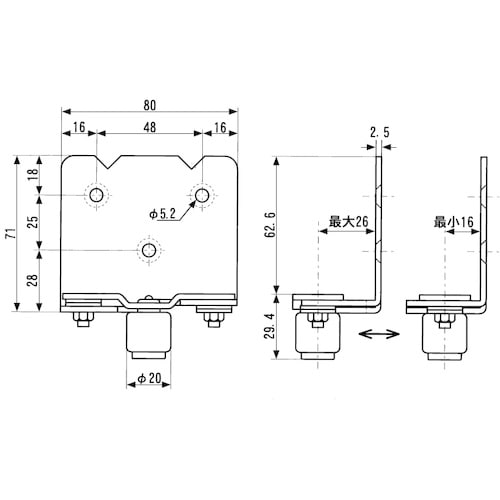 適用扉厚30ー35mmの後付タイプのガイドローラーです。SUS304ステンレス製で耐食性、加工性、溶接製に優れています。 |