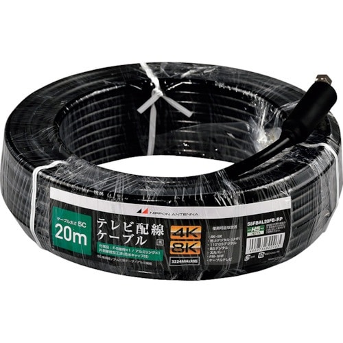 日本アンテナ 日本アンテナ テレビ配線ケーブル S5C 片側接栓加工 4K8K対応 黒 20m A012-3651