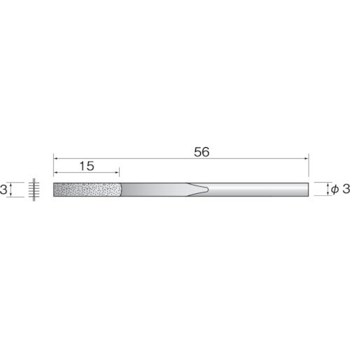粒度(#):400 | 形状:平 | 全長(mm):56 | 刃長(mm):15 | 幅(mm):3.0 | 厚さ(mm):0.3〜1.0 | 軸径(…