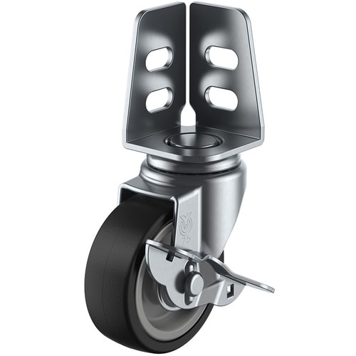 アングルへネジやボルトで簡単に取り付けることが出来ます。軽量で走行性に優れたナイロンホイルゴム車輪を使用しています。アングル式の棚や軽荷重機器運搬に。 |