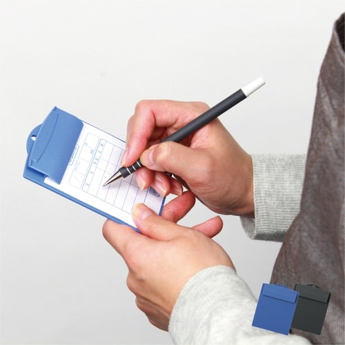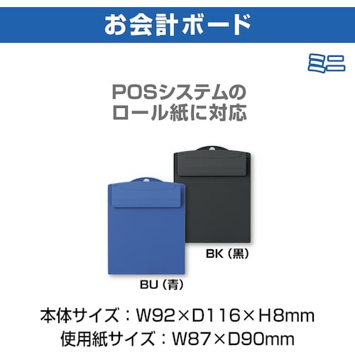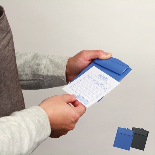 飲食店・レストラン等の伝票に最適です。オール樹脂製、汚れても水洗いできて清潔です。薄さ僅か8mmの極薄タイプです。POSシステムで使用されているロール紙(巾80mm)に対応しています。 |