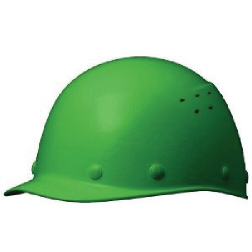 上方視界を確保する短く湾曲したバイザー形状です。ムレを軽減する通気孔付きです。後頭部保護形状です。サイズ合せが簡単で、頭部にぴったりフィットするRAバンド仕様です。飛来・落下物・墜落時保護用。 |