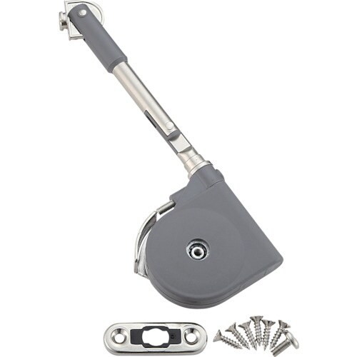 ラプコン機構を搭載した上蓋用のソフトダウンステーです。左右兼用で、取り付けが簡単です。扉を最大に開いた状態で保持します。扉開き角度、吊元丁番(別売)の種類により、3タイプあります。各種産業機器。 |