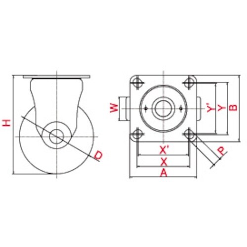 標準的な中型キャスターで、重量物の運搬に数多く使用されています。走行性に優れたゴム車輪を使用しています。台車、ワゴンなどに。 |