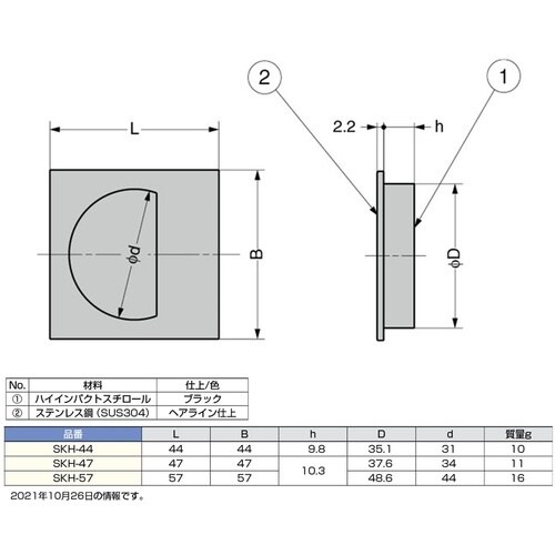 その他仕様:埋込・掘込取手 | 材質・仕上げ:ハイインパクトスチロール | 単位:1個