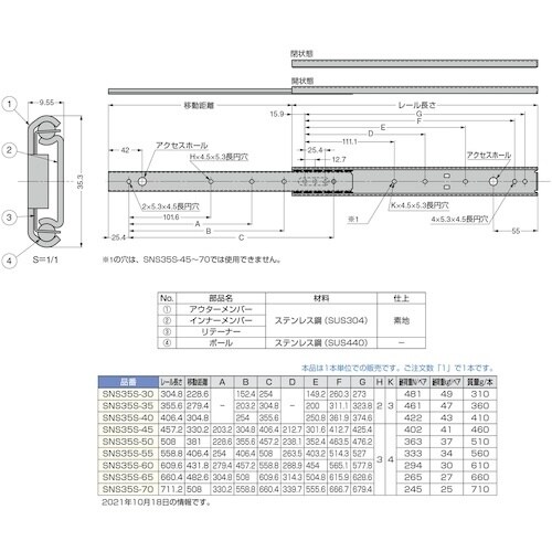 スガツネ工業 SUGATSUNE (190110198)SNS35S−65オールステンレス鋼製スライドレール A012-6250