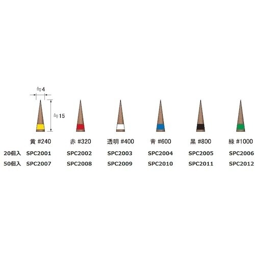 粒度(#):240 | 色:黄色 | サイズ(mm):4×15 | 単位:1箱(20個)