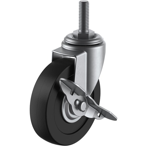 ユーエイ ねじ込み式 自在 ステンレスキャスター ゴム 車輪径100mm ストッパー付き Eタイプ SUS−ET−S型 ネジ寸法W3/4×40山数10