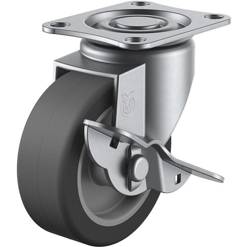 耐水性・耐食性に優れたオールステンレス製金具を使用しています。走行性・耐荷重を備えた標準的な小型キャスターです。軽量で床面を汚しにくいエラストマー車輪を使用しています。 |