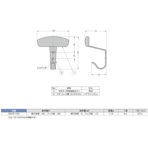 SUGATSUNE (110020098)SW−B−180/スチールウッド 帽子掛