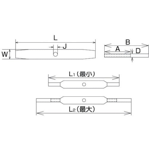 使用荷重(kN):1.96 | ねじ径:W1・4 | L(mm):100 | A(mm):45 | W(mm):13 | B(mm):100 | D(…