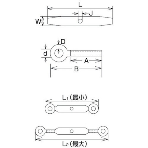 使用荷重(kN):2.94 | ねじ径:W5・16 | L(mm):125 | A(mm):50 | W(mm):14 | B(mm):97 | d(…
