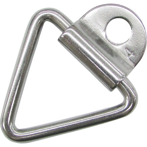 リング部分が倒れるので、使用しない時は倒すと邪魔になりません。テントロープの端末処理、懸垂幕などの細物ワイヤ・ロープなどの受け金具として。