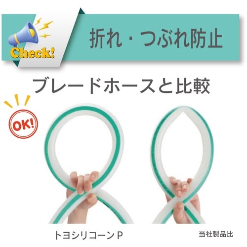 【耐熱・耐寒】−30ー100℃で使用が可能な耐熱ホースです。【ホースの折れ・つぶれ防止】特殊PET樹脂コイル補強で、折れ・つぶれに強く、狭い箇所の配管に最適な耐熱ホースです。 |