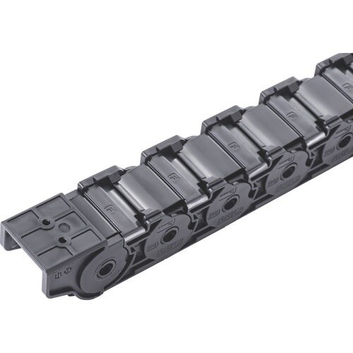 簡易的な構造で超軽量です。本体とカバーが一体構造でケーブル類の収納が容易です。長さ調整が容易でエコノミーなケーブルチェーンです。 |