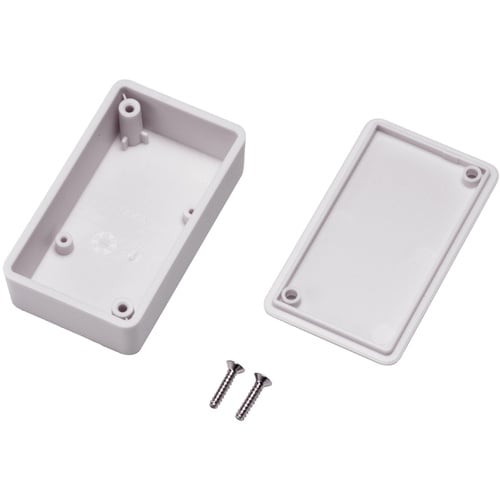 ビス止め構造の小型汎用難燃性プラスチックケースです。基板取付用のボスが付いています。
