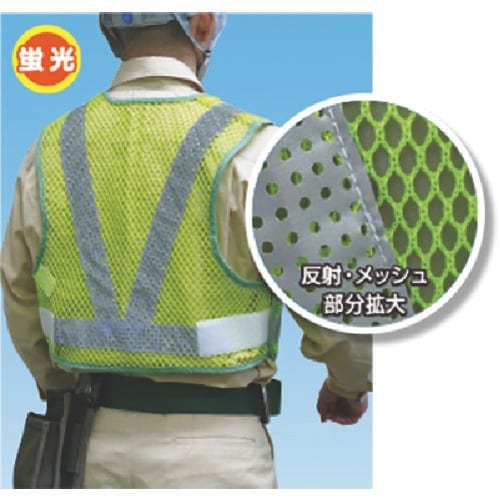6mm目メッシュにより通気性が非常に良く、また反射クロスに穴加工を施したことにより、反射材の熱も放出します。夜間作業も安心で、オールシーズンお使いいただけます。 |